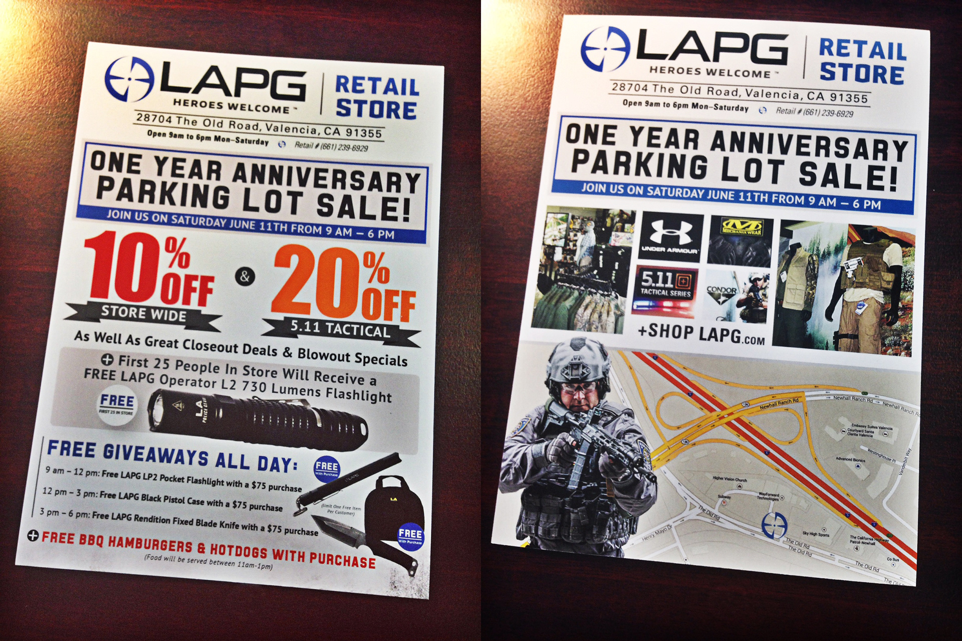 5x7 Postcard Advertisment created for LAPG's Retail Locations one year anniversary sale.