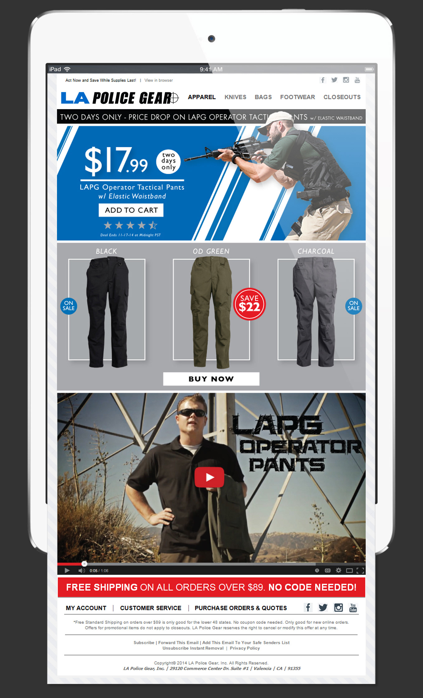 Email Blast Design for LA Police Gear Promoting their Operator Tactical Pants.