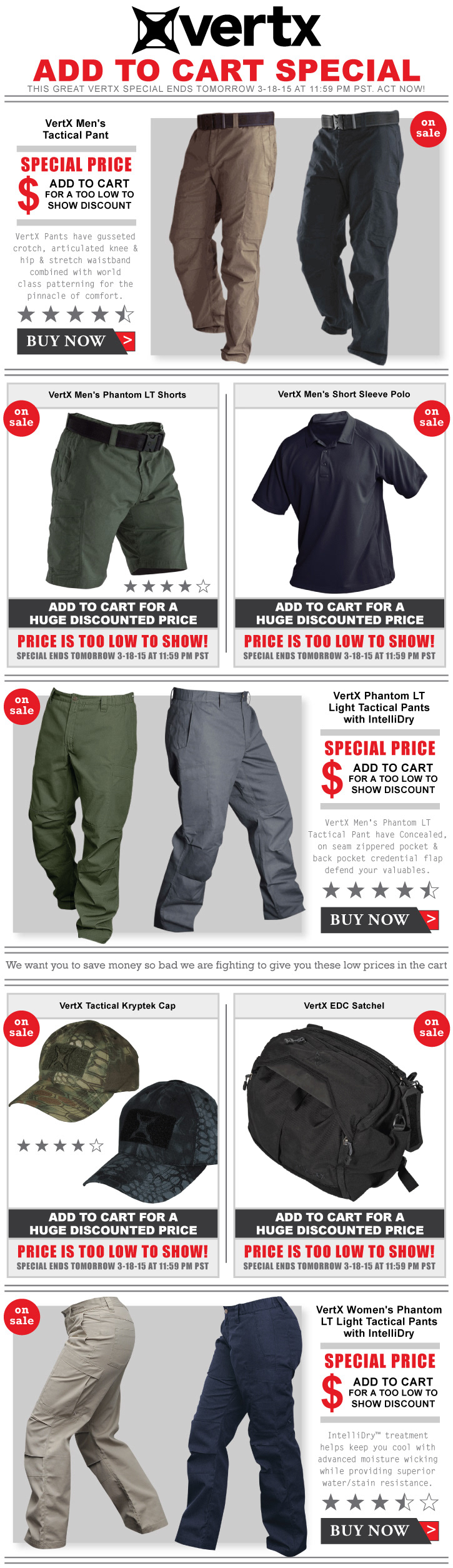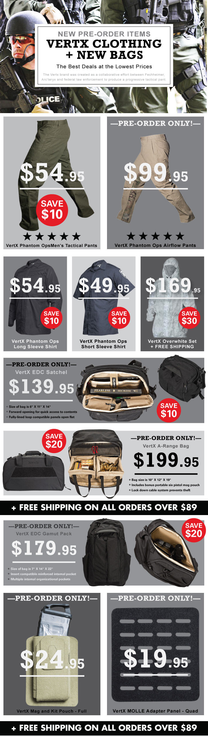 These are just a few examples of the email blast advertising created for LAPG.com to sell The Vertx Tactical Brand.