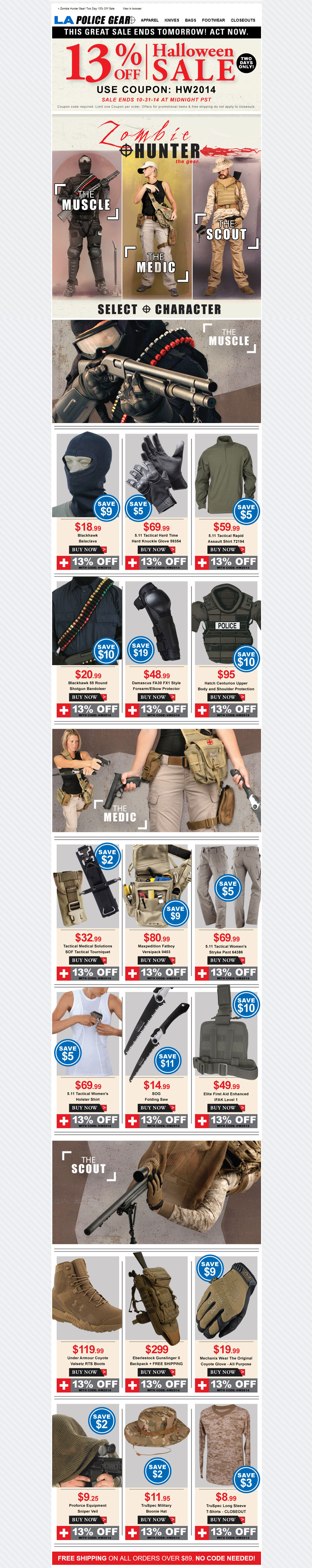 Email Blast Advertising Campaign Used to Gain Attention During the Halloween Season. The concept was to have the email be entertaining and look like the select screen for a fictitious video game called 'Zombie Hunter'.